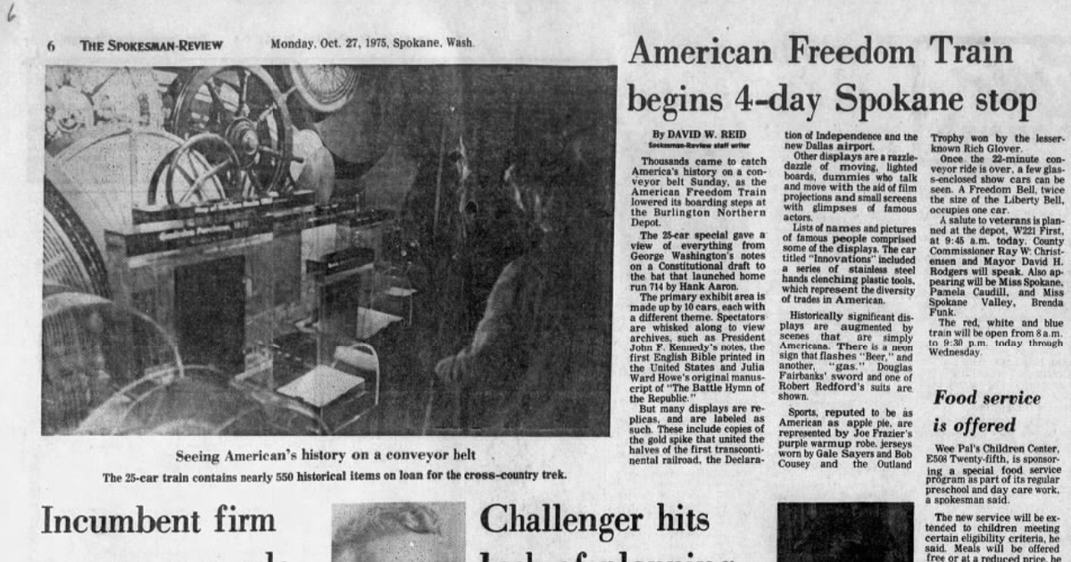10.24.2025 Brobible.comFrom 1975: Here’s a few of the items on display on the American Freedom Train, which was in Spokane for a four-day visit. The first English Bible printed in the United States. George Washington’s notes on a draft of the Constitution. The bat that Han...