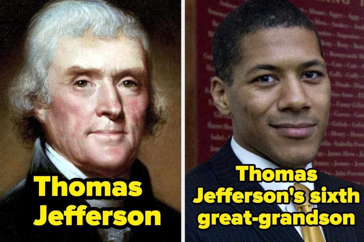 Here's Abraham Lincoln: And here's his 11th-generation cousin Ralph Lincoln: Here's President Thomas Jefferson: And here's Jefferson's sixth great-grandson Shannon LaNier: Here's President Theodore Ro...