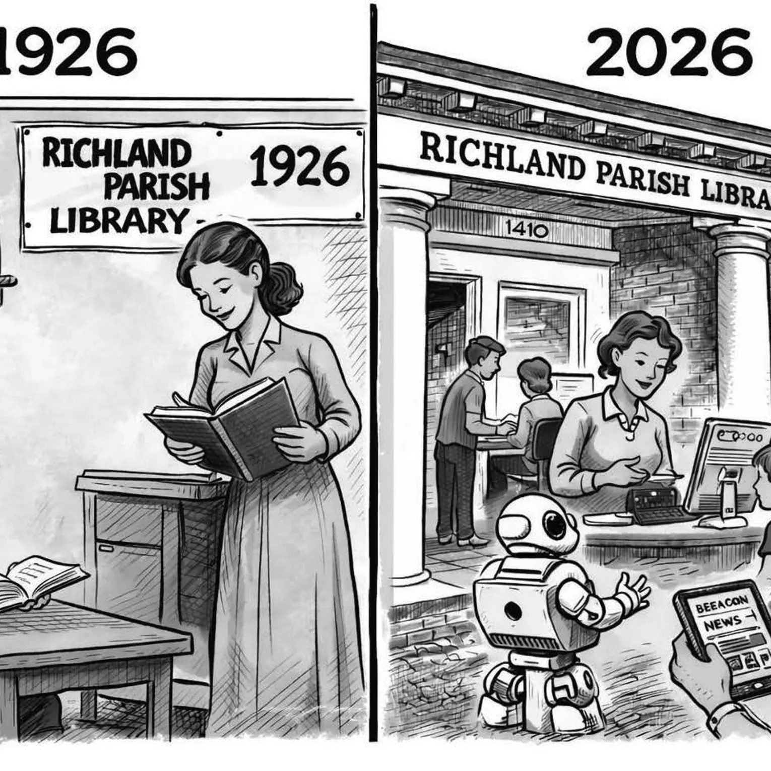 The Richland Parish Library was founded April 15, 1926, in a room at Rayville’s school. Somebody from the Beacon was there to write about it. They didn’t take pictures. That wasn’t much of a thing bac...